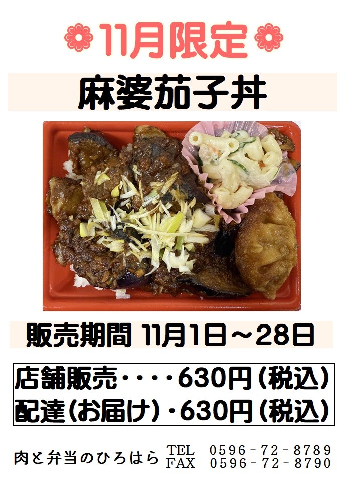 (お弁当)11月の季節メニュー*麻婆茄子丼*
