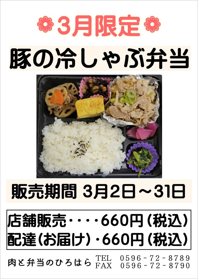 (お弁当)3月の季節メニュー*豚の冷しゃぶ弁当*
